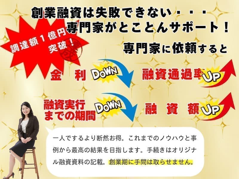 平成29年度の融資制度「新創業融資制度」が創業者向けにマッチしやすいと考えております。他にも融資制度は多数ございます。状況や内容を見てご提案いたしますのでご安心ください。